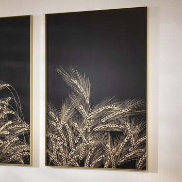 This large wood wall art features a hand-carved wheat design framed in a bold gold metal frame. Made from wood and metal, this modern artwork adds a touch of sophistication to any space. Perfect for elevating your home decor, it�s a stunning piece of wall artwork and wall decor for your collection.