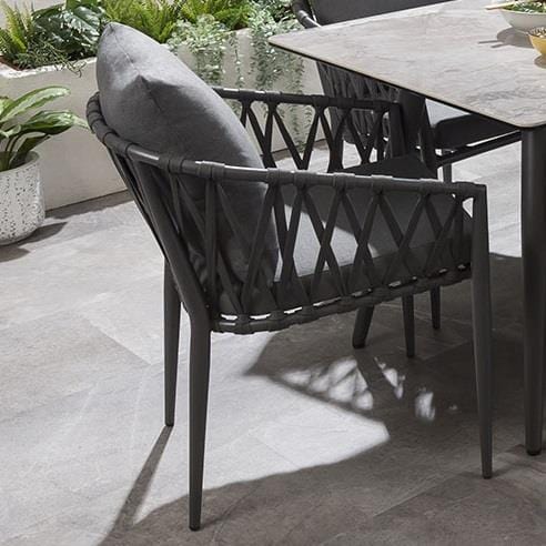 Reinvent your outdoor space with these fabulous all-weather grey rope-back garden dining chairs. The generously padded outdoor chairs are enhanced by a supportive back cushion for an extra layer of luxurious comfort. Our gorgeous rope back garden chairs will make a stunning addition to your outdoor seating area or patio.