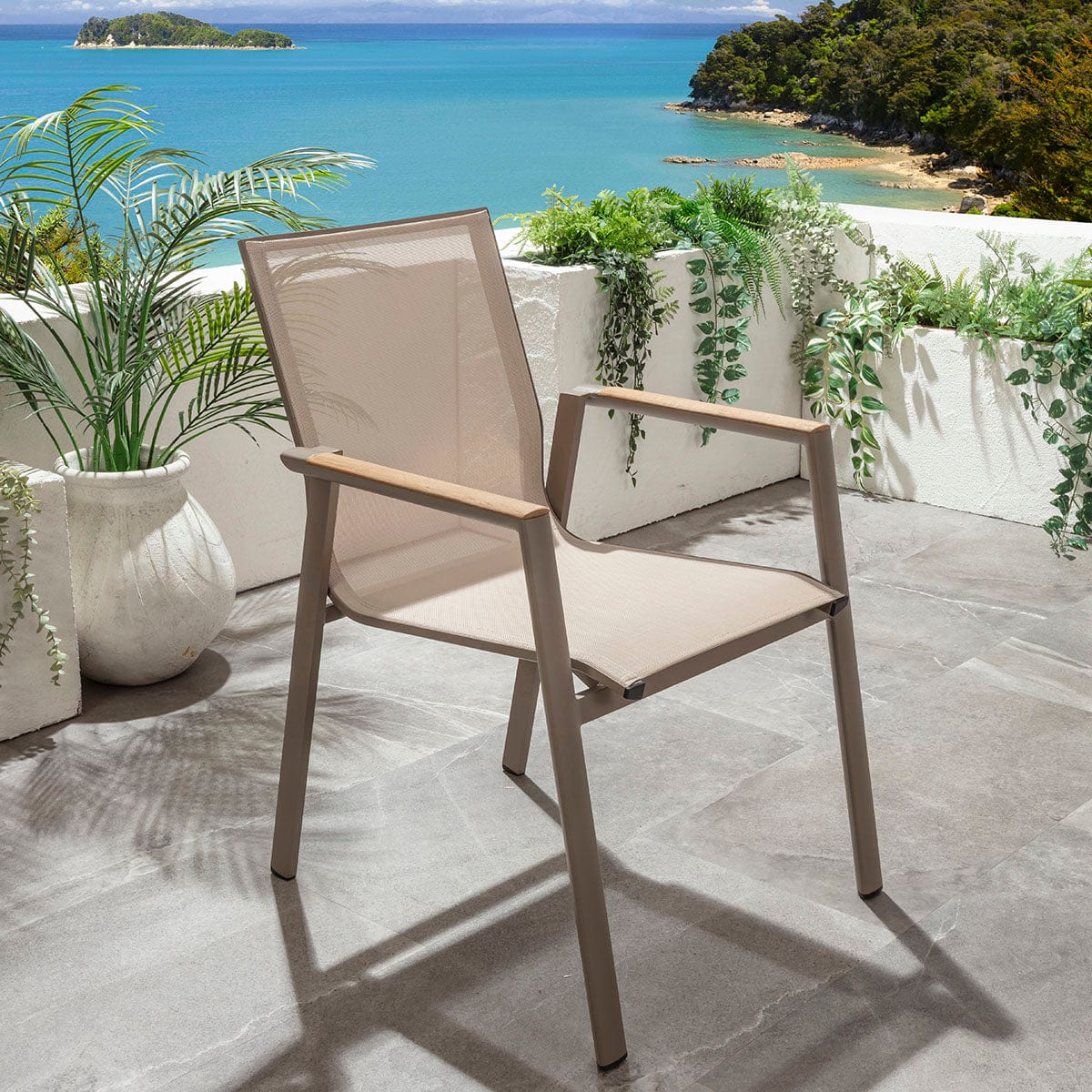 Leno Textilene & Aluminium Outdoor Garden Dining Chair Beige