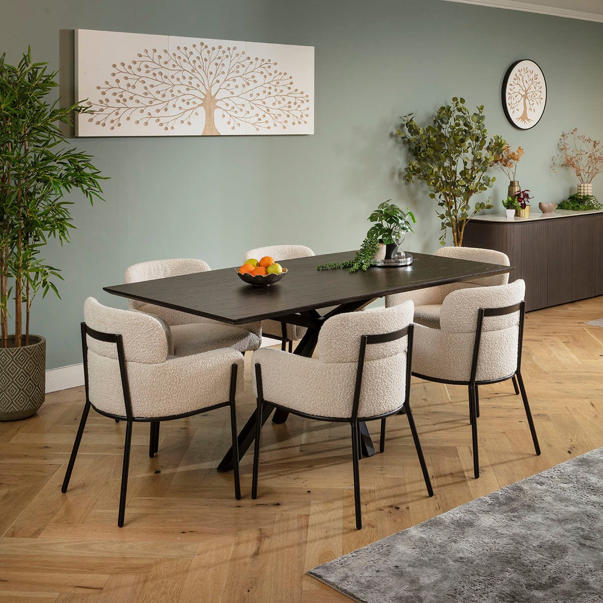 Lily & Grado 6 Seater Dining Set Cream Boucle & Dark Oak
