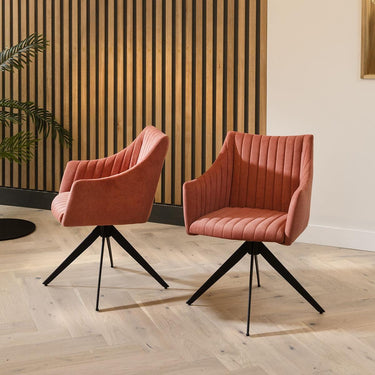 Upgrade your interior with this pink dining chair, the perfect blend of style and comfort. A swivel dining chair with arms, this velvet kitchen chair features a modern carver design and plush velvet upholstery. Ideal for modern and contemporary dining sets, it’s a premium designer kitchen chair choice.