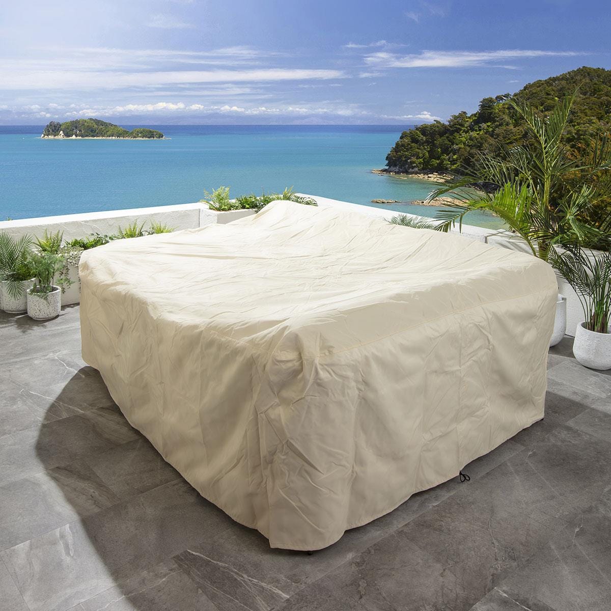 Sink into luxurious relaxation with our super soft cushions, upholstered in soft touch charcoal outdoor fabric. Included with the bench, these cushions provide unparalleled comfort for hours of lounging. Store them away with ease when not in use, and keep your investment protected with the included weather cover, ensuring your outdoor oasis stays pristine year-round.